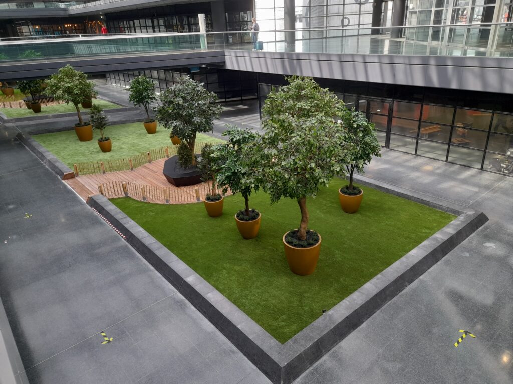 Nous annonçons la rénovation complète des espaces verts de l’Atrium de Lille en collaboration avec Mood Retail. Ce projet marque une nouvelle étape dans la vie du site, au service des usagers. Les deux grandes jardinières, autrefois plantées de bambous, ont été entièrement repensées pour accueillir des arbres artificiels de dernière génération. Ces structures, conçues pour répondre à des problématiques d'étanchéité de la dalle, offrent une verdure permanente. Leur design moderne et leur intégration paysagère s’harmonisent parfaitement avec l’architecture de l’Atrium, créant une ambiance apaisante et accueillante. Avec le client, nous avons également souhaité rendre l’Atrium plus inclusif en aménageant des terrasses équipées d’assises. Ces nouveaux espaces, pensés pour le confort de tous, permettent aux visiteurs de profiter pleinement de ce lieu de vie, que ce soit pour une pause déjeuner, une réunion informelle ou un moment de détente. L’accessibilité a été repensée pour faciliter la circulation et l’usage des espaces par tous les publics, y compris les personnes à mobilité réduite.